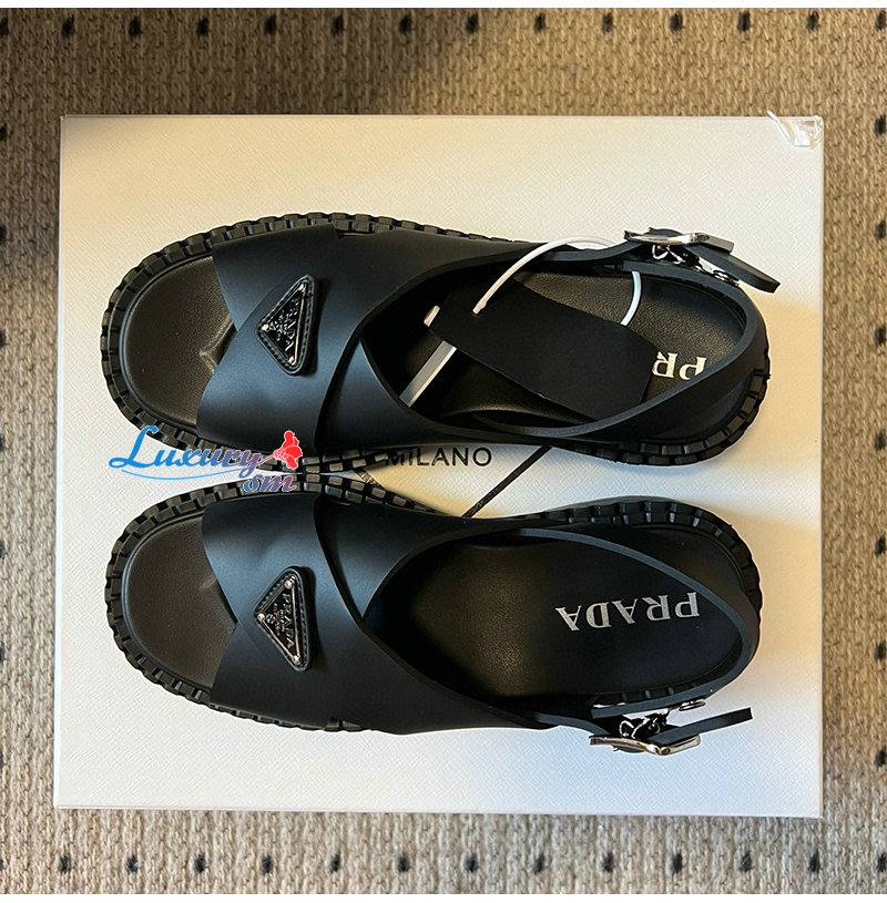 PRADA-1X102O 프라다 블랙 러버 샌들 여성용