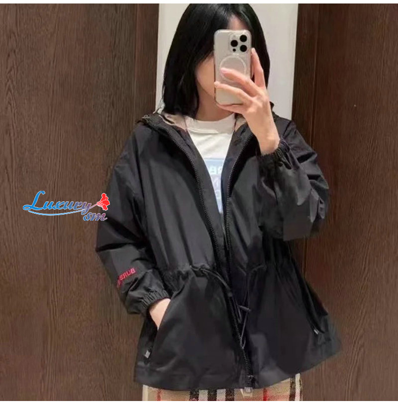 BURBERRY-08062 버버리 블랙 나일론 바람막이 후드 재킷 여성용