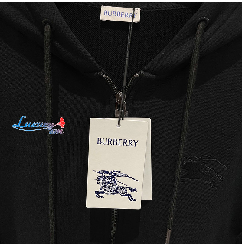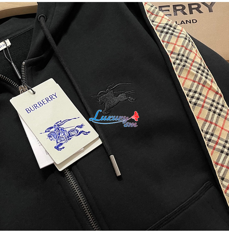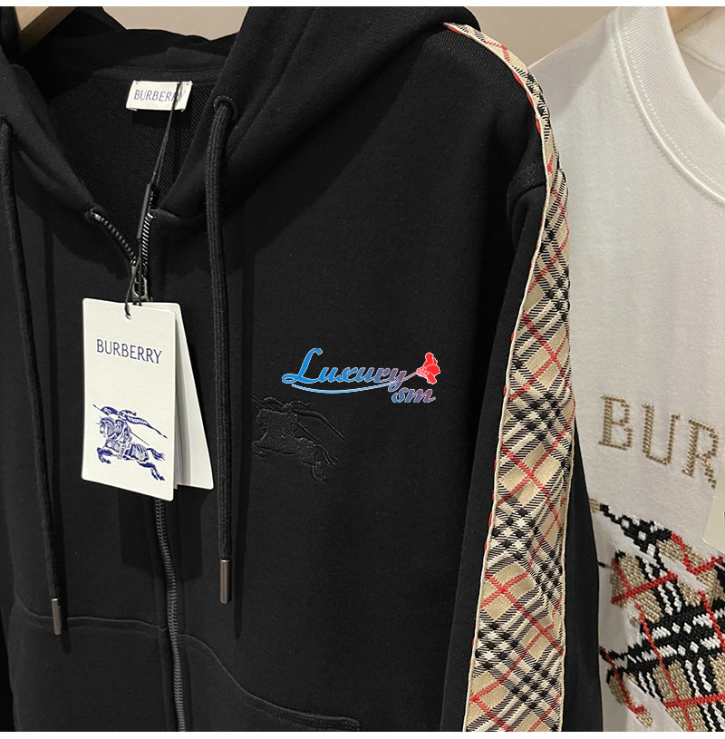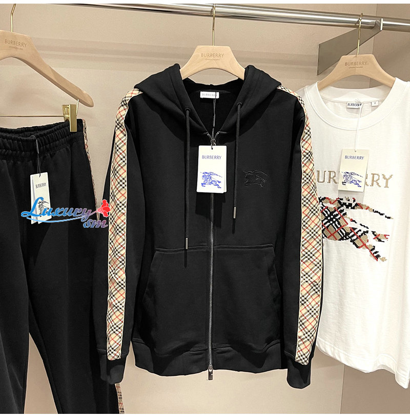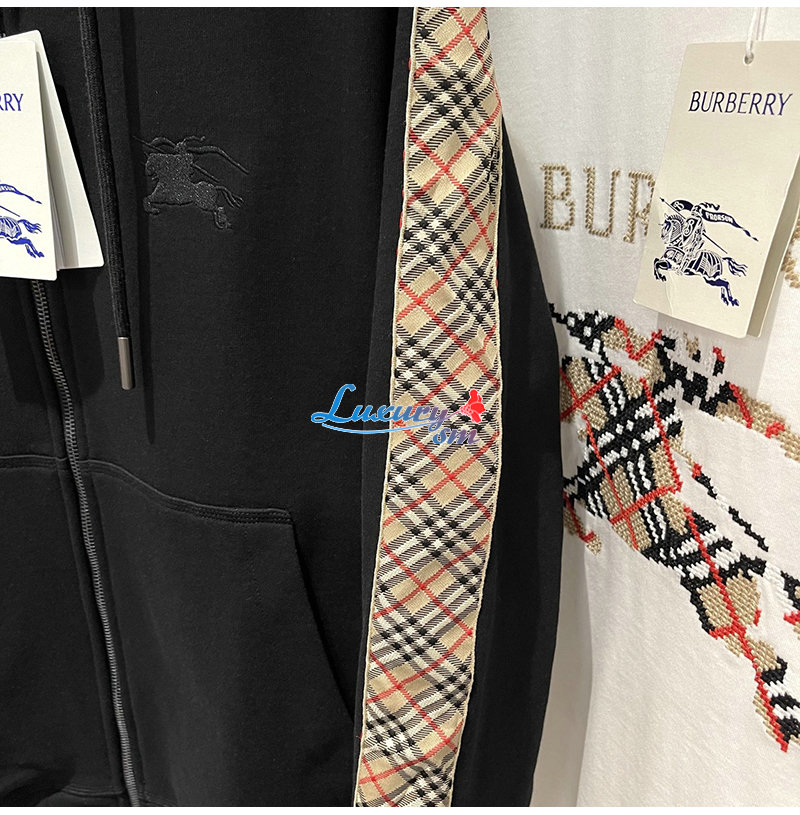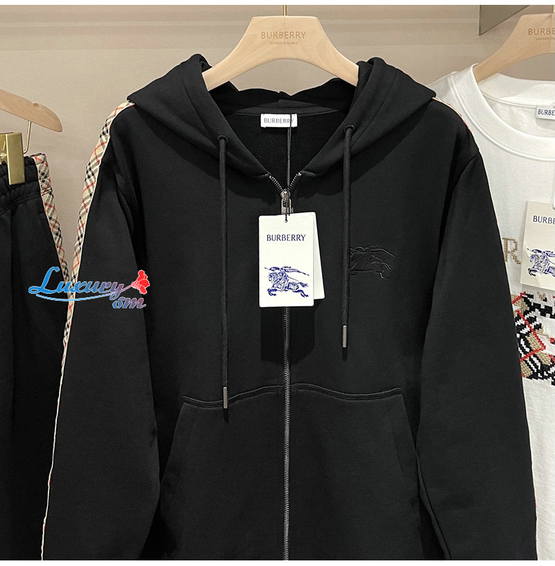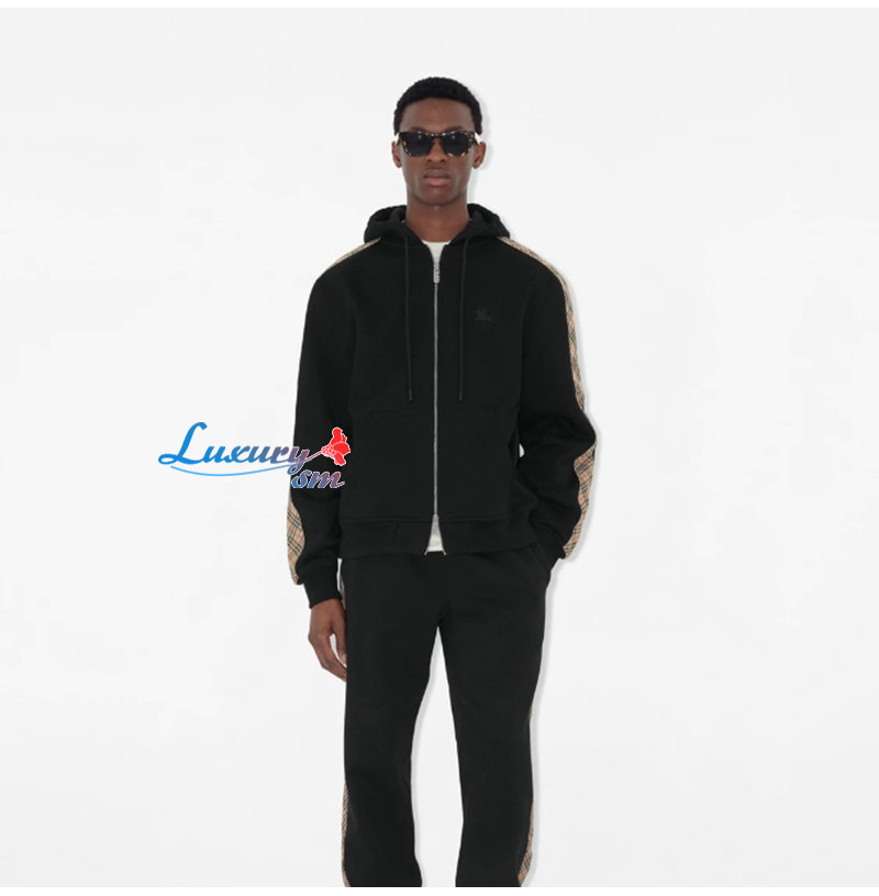 BURBERRY-81107901 버버리 블랙 체크 트리밍 코튼 지퍼 후디 남여공용