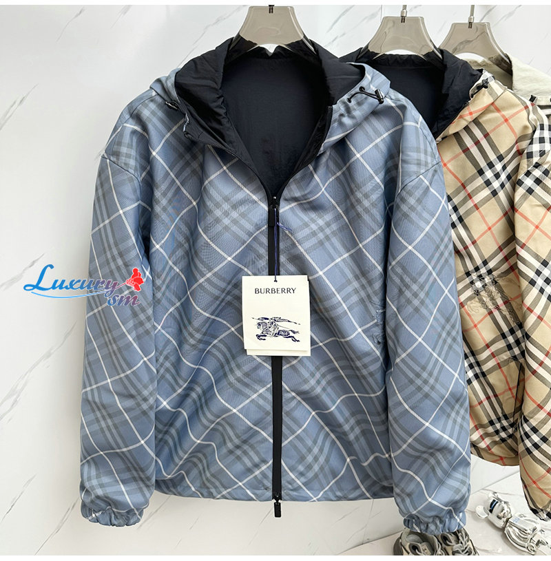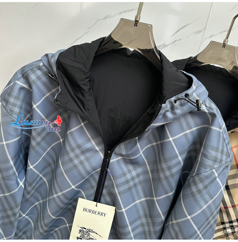 BURBERRY-081110 버버리 블루 체크 양면 바람막이 후드 재킷 남여공용