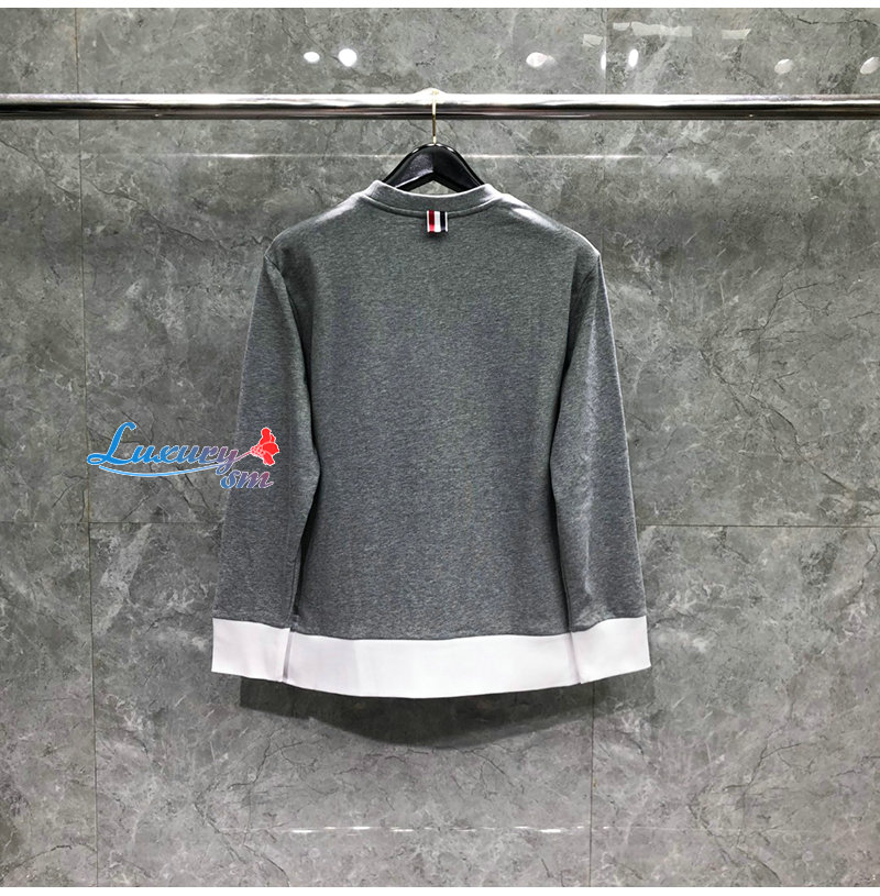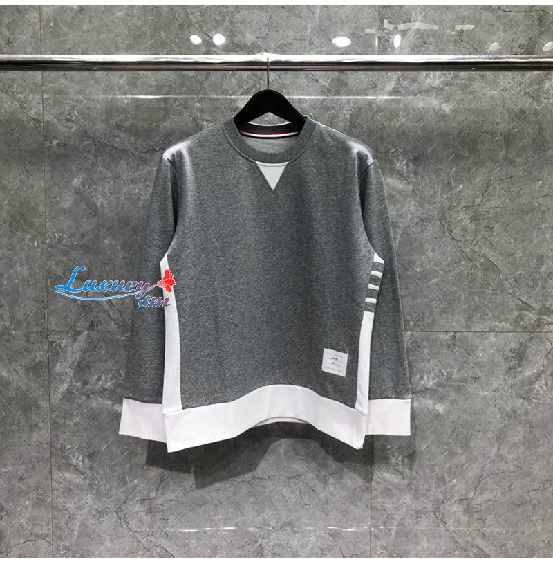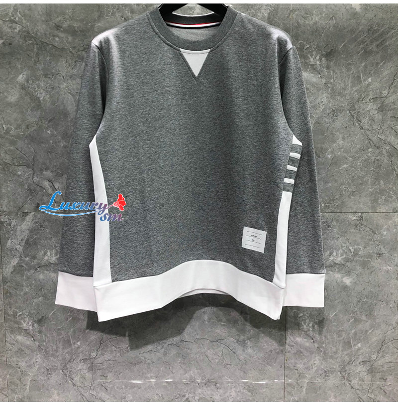 THOM BROWNE-08208 톰 브라운 그레이 스트라이프 장식 스웨트셔츠 남성용