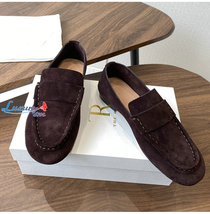 THE ROW-F1626L3 더 로우 브라운 Soft 스웨이드 모카신 여성용