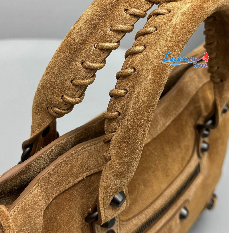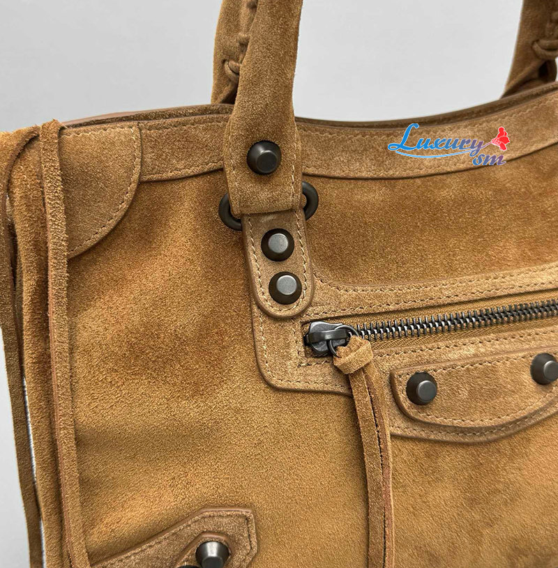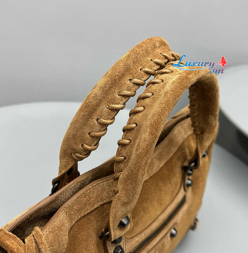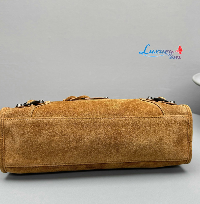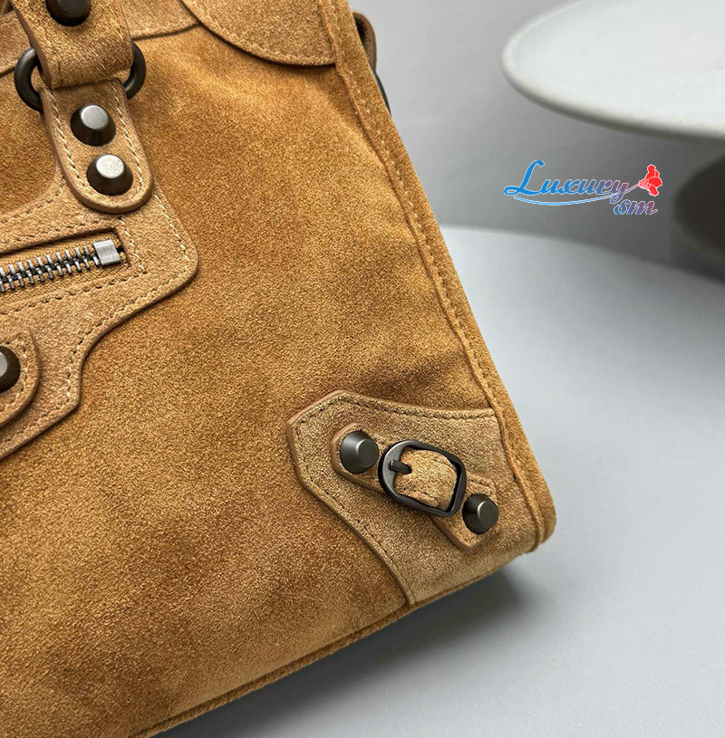 카멜 스웨이드 카프스킨 소재의 르 시티 백 스몰, 브라스 장식