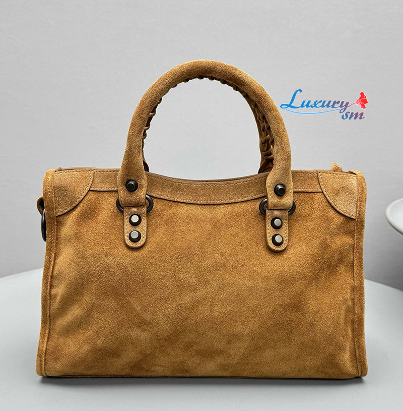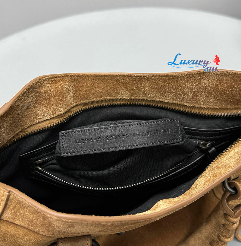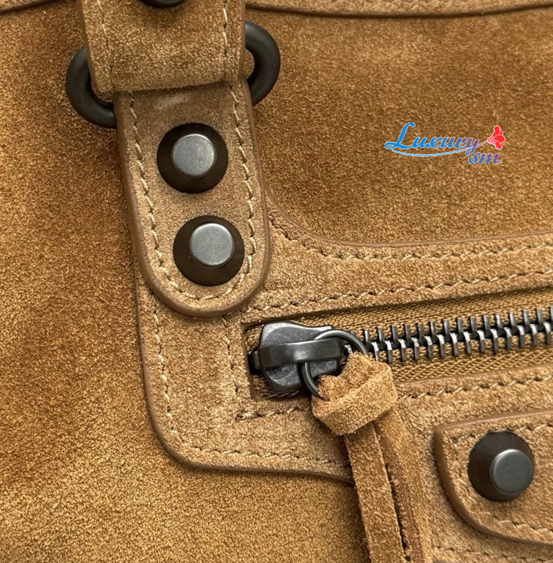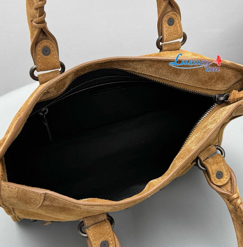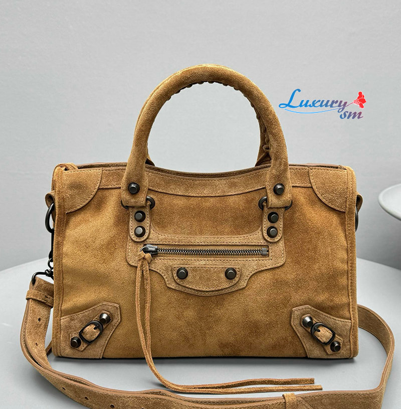 카멜 스웨이드 카프스킨 소재의 르 시티 백 스몰, 브라스 장식