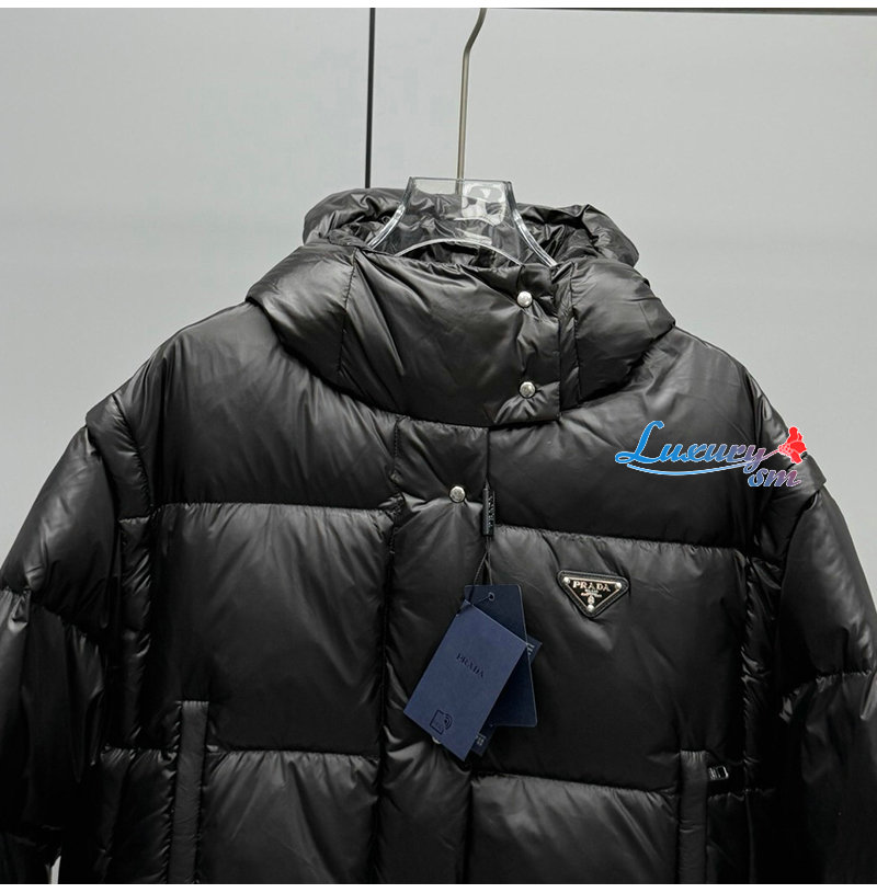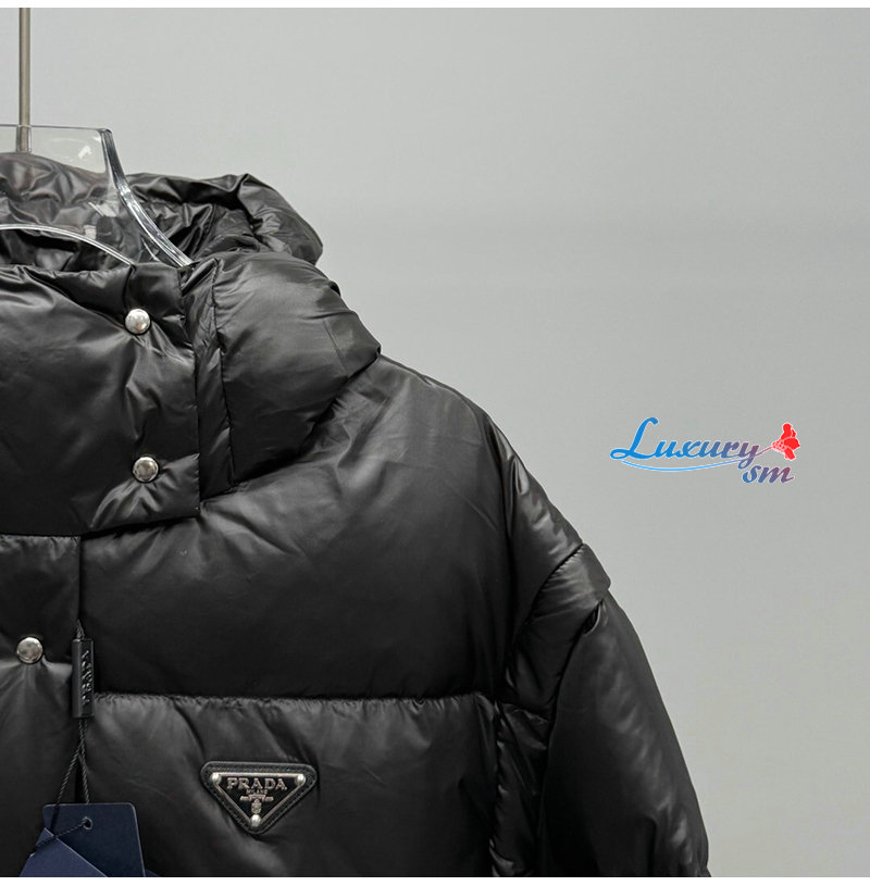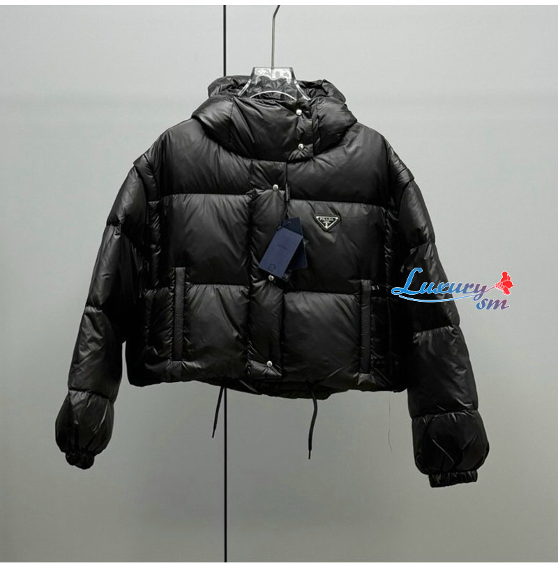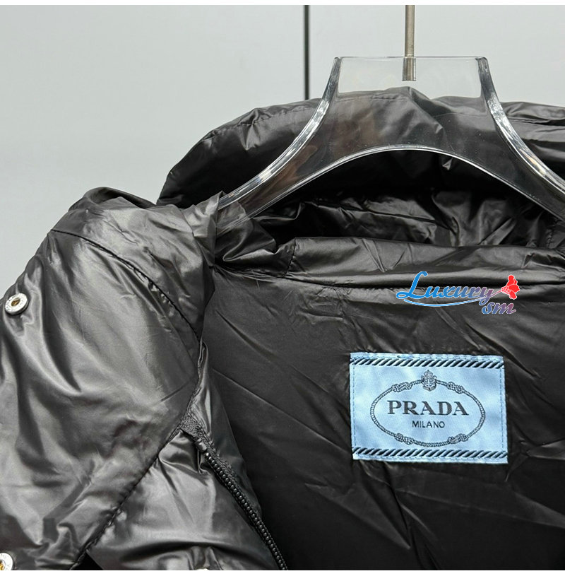 PRADA-112400 프라다 2025 가을/겨울 신상 여성용 후드 퀼팅 패딩 점퍼 블랙 여성용