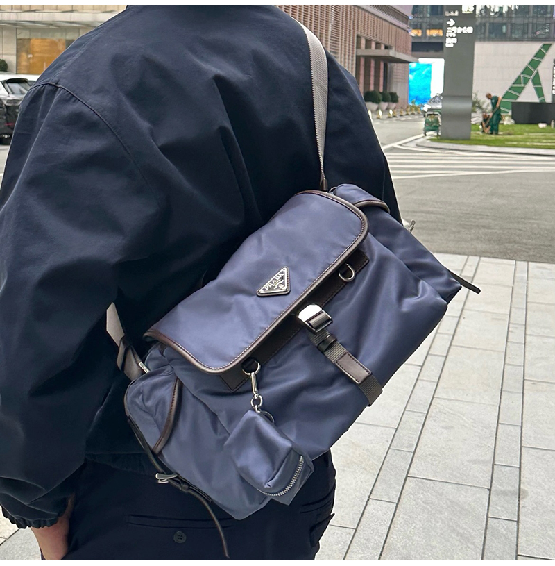 [스페셜오더]PRADA-2VD081 프라다 리나일론 및 가죽 숄더백 에비에이션 블루