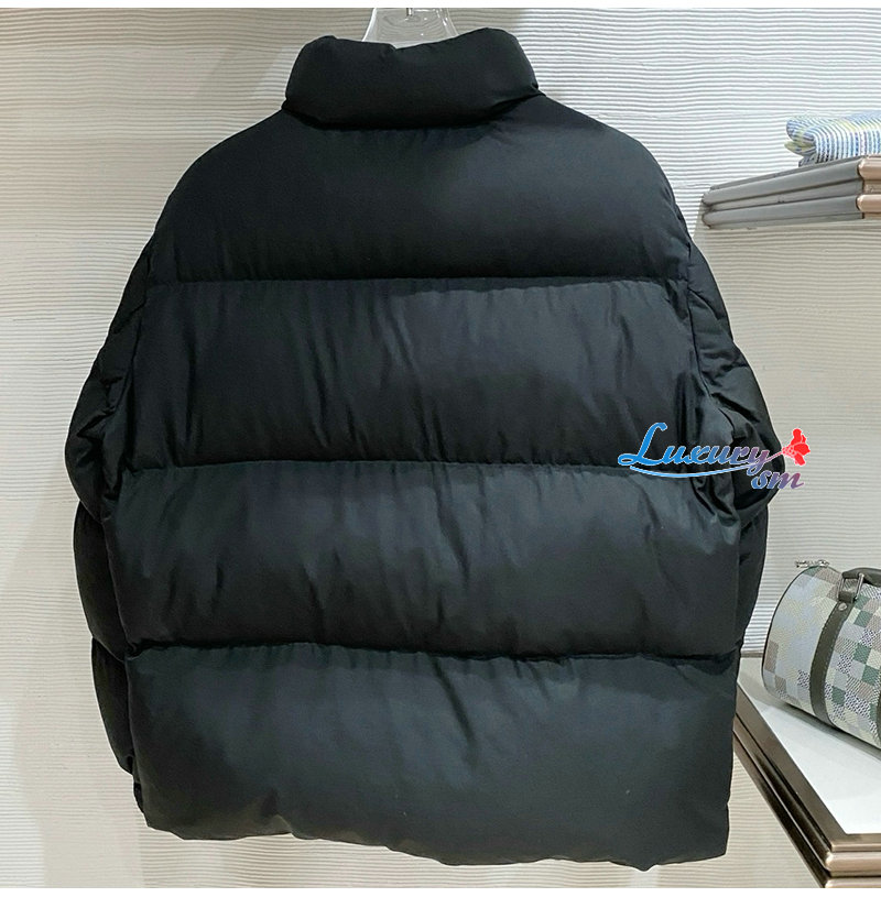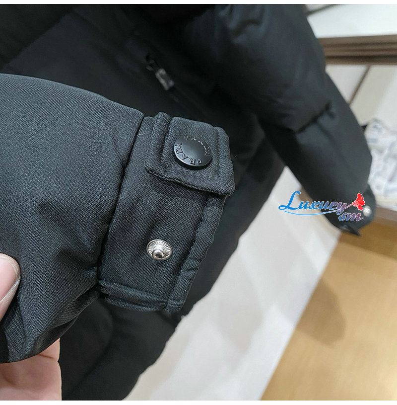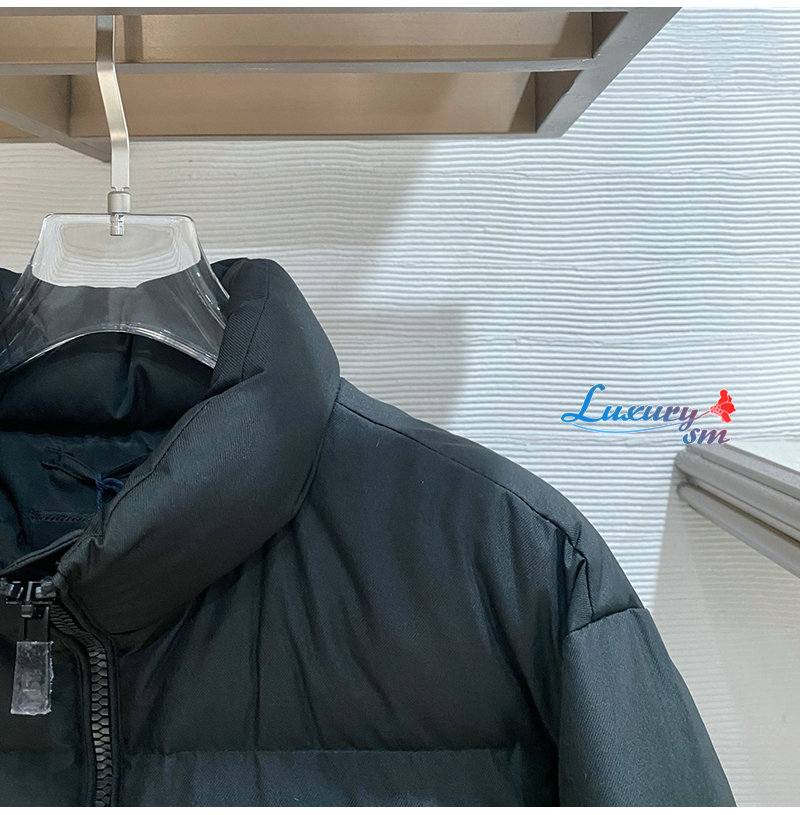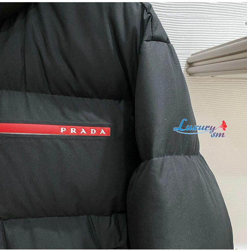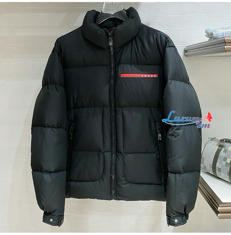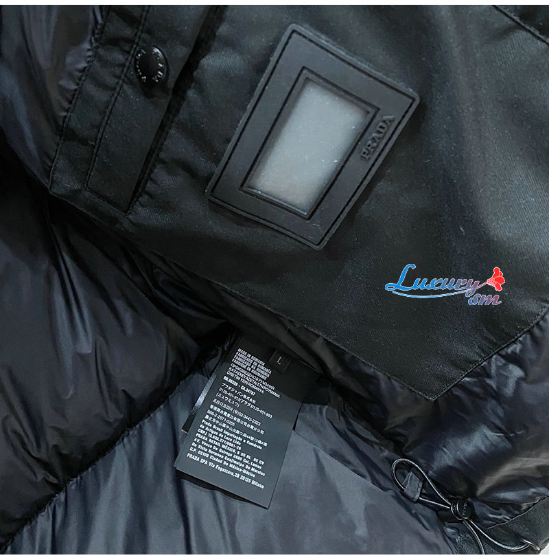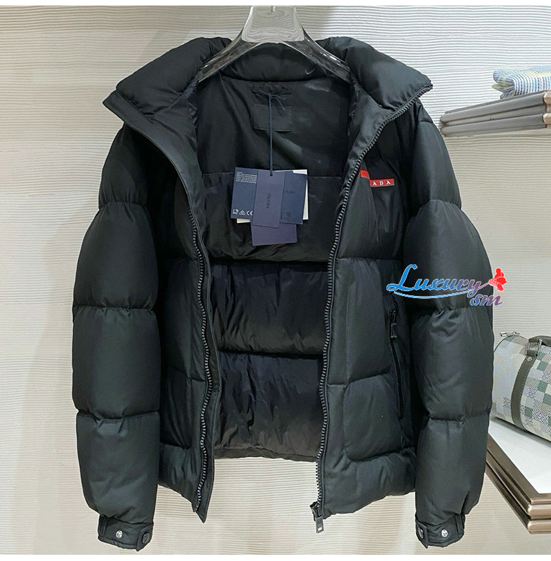 PRADA-1E2C09 프라다 신상 자카드 나일론 패딩 / 메탈 소프라니 로고 패딩 블랙 남성용