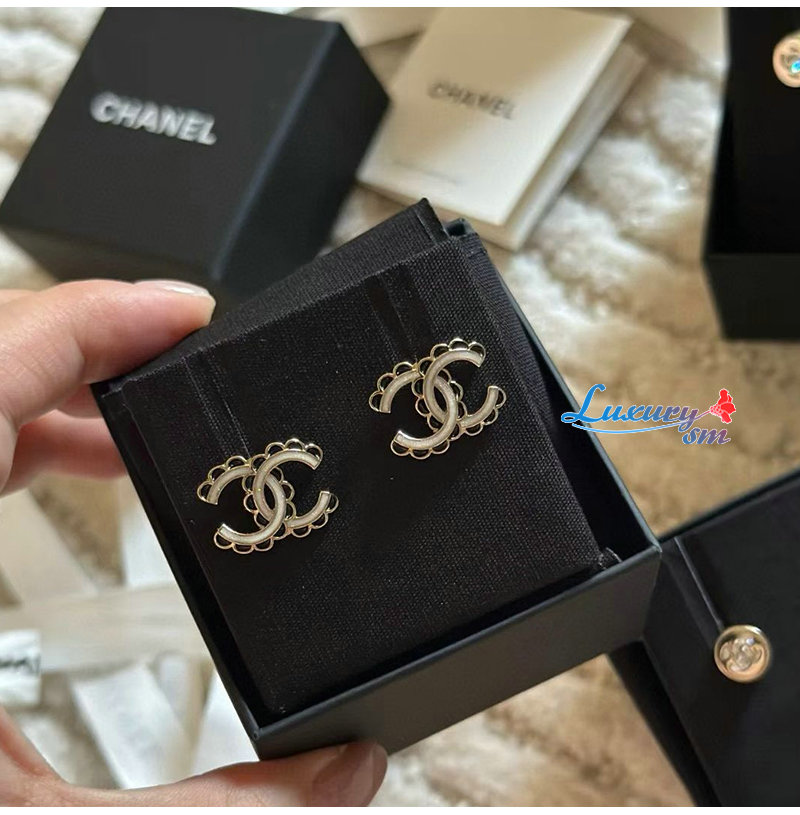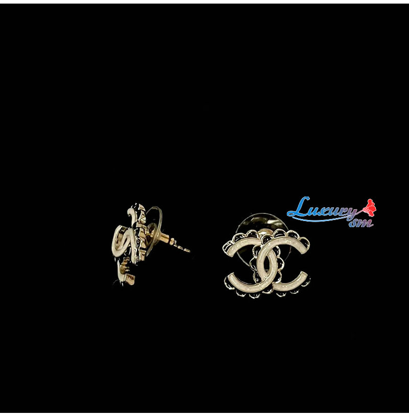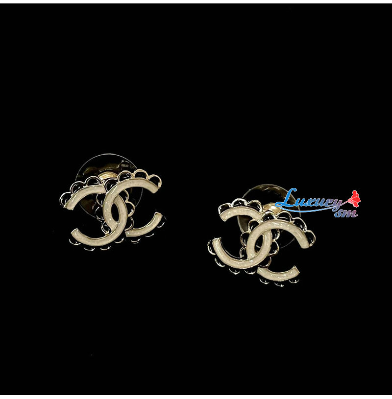 CHANEL-7529 샤넬 블랙 앤 화이트 레이스 더블 C 귀걸이