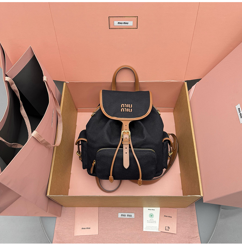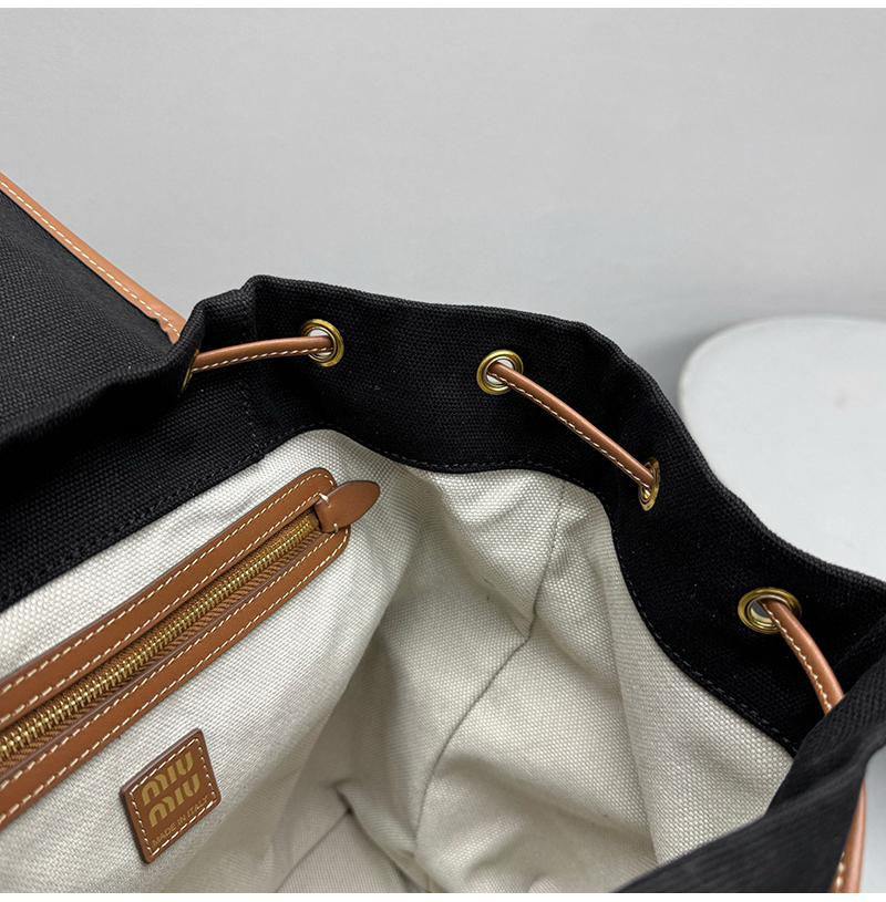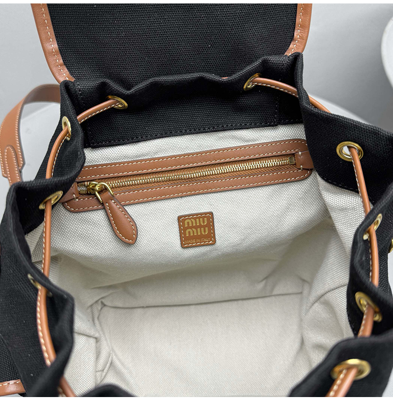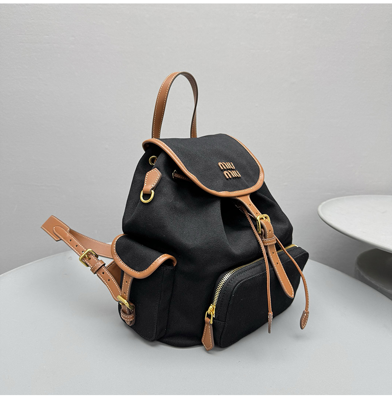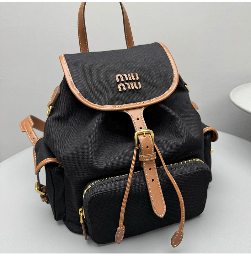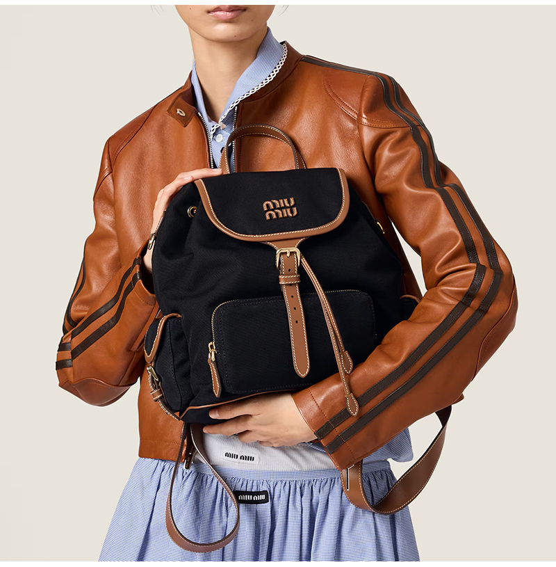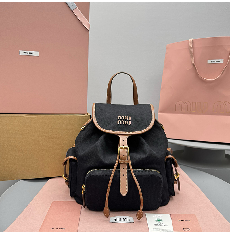 [스페셜오더]MIUMIU-5BZ042 미우미우 캔버스 및 가죽 백팩 블랙
