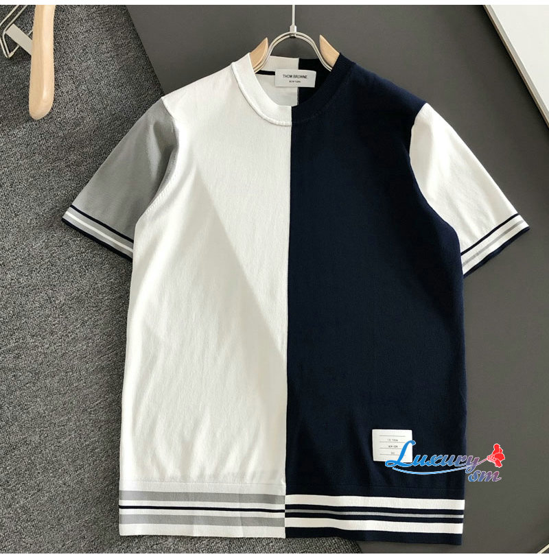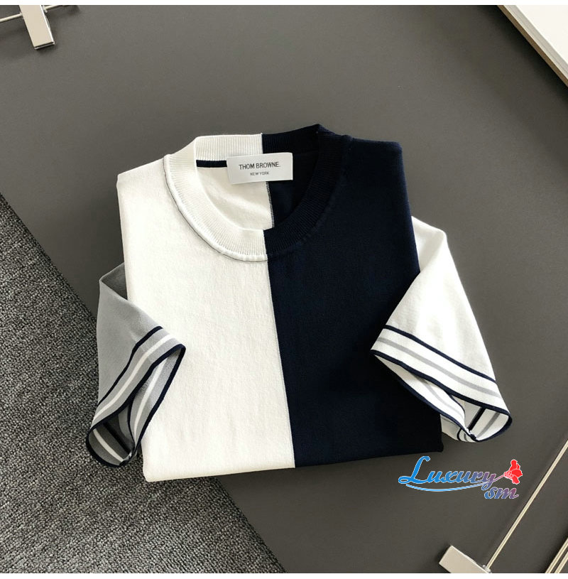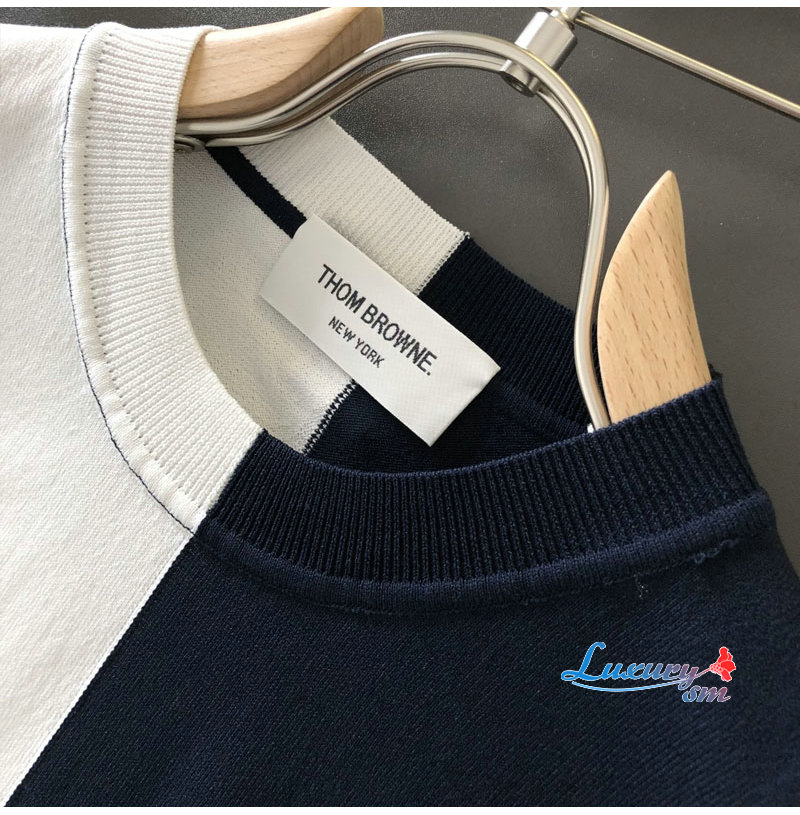 THOM BROWNE-040610 톰브라운 2026년 남성용 니티드 크루넥 반팔 셔츠!